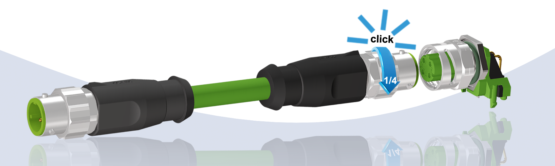 Diese Technik reduziert nicht nur die Montagezeit, sondern verhindert auch typische Fehler, etwa unvollständig verschraubte Verbindungen. Gleichzeitig bleibt die Verbindung vibrationsfest und erfüllt die gängigen Schutzarten wie IP67 oder IP69K.
